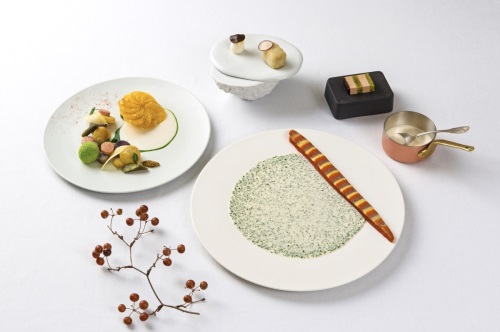아뮤즈 로는 트러플 크로켓, 무스 스타일의 피스타치오 푸아그라가 제공되며, 미들 요리는 뵈르 블랑 소스를 얹은 평창 송어가 준비된다. 이어 메인 요리로 삼척산 머루와인소스, 밤 에뇰로띠, 샐러리 등으로 부드러운 식감을 살린 횡성 한우 살치살 스테이크를 즐길 수 있다.