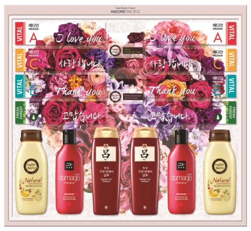 ‘생활용품 아름 6호’ 세트는 감사하는 마음을 담아 후면에 하트 디자인을 삽입하고 단상자에도 별도 디자인을 그려 시각적인 차별화를 둔 제품이다. 구성제품으로는 한방 프리미엄 샴푸 브랜드 려의 ‘함빛 극손상케어 샴푸’를 비롯해 토탈 헤어 코스메틱 브랜드 미쟝센, 토탈 바디케어 전문 브랜드 해피바스, 덴탈케어 전문 브랜드 메디안 제품이다.