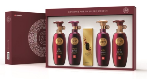 ‘리엔 2호’ 세트는 면세점에서 판매하며 중국 유커들에게 큰 인기를 끈 ‘리엔 윤고 더 골드’가 활용됐다. 구성으로 포함된 자윤샴푸는 모근 강화에 효과가 있고 보양진은 의약외품 허가를 받았으며며 탈모방지에 효과가 있다. 모발에 대한 고민이 생기기 시작하는 중장년층들에게 선물로 적합하다.