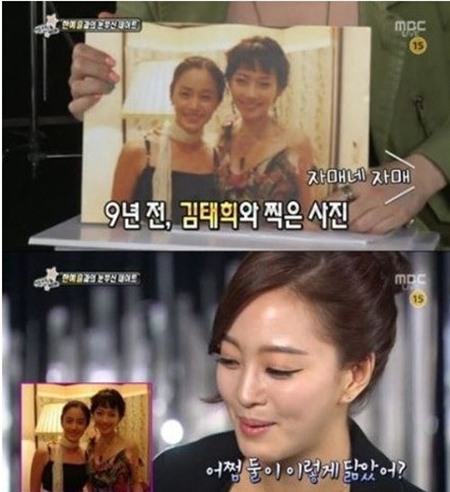 이에 사진을 본 한예슬은 환하게 웃으며 “정말 자매처럼 닮았다. 어쩜 이렇게 닮았어? 쌍둥이네 쌍둥이”라고 너스레를 떨었다. 이어 “(김)태희 언니 미안해요. 좀 묻어가려 그랬어요”라고 덧붙여 웃음을 자아냈다.