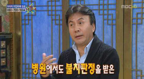 이어 "명예라도 남기자라는 생각이었다. 뼈만 남아 사람의 얼굴이 아니었다. 연기하면서 관객과 눈이 마주쳤는데 얼굴이 괴물같이 보여서 관객이 놀라더라. 진짜 해골이었다. 각혈을 멈추는데 20일 걸렸다. 당시 병원에서 살 희망이 별로 없다고 진단을 받았다. 가난해서 보건소에서 주는 약으로 버티다가 결국 고향 어머니에게 찾아갔다. 그런데 폐결핵은 전염병이라서 위험했다. 그런 가운데서도 우리 어머니는 내가 외로울까봐 찌개를 같은 숟가락으로 함께 섞으며 드셨다"고 밝혀 뭉클함을 자아낸 바 있다.
