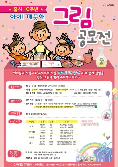 CJ라이온 ‘아이! 깨끗해’ 브랜드 담당자는 “지난 2년간 그림 공모전에 참가한 학생들과 학부모님들의 성원에 다시 한 번 감사의 말씀을 전하며, 올해는 ‘아이! 깨끗해’ 출시 10주년을 기념해 진행되는 만큼 축하와 감사의 마음으로 더 많은 분들과 함께 즐겁고 의미 있는 행사가 됐으면 좋겠다”며 “’아이! 깨끗해’는 앞으로도 아이들이 손 씻기를 친근하게 느낄 수 있는 다양한 이벤트를 개최할 예정”이라고 전했다.