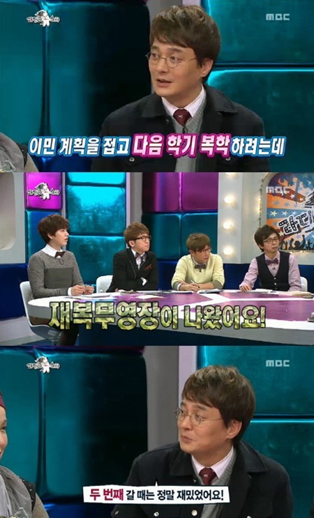 이날 방송에서 MC 규현은 조민기에게 "싸이 말고 군대를 두 번 간 연예인이 또 있다. 군대를 두 번 다녀오셨다고 들었다"고 물었다.