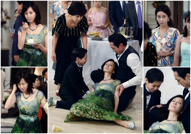 생일잔치 당일 만후는 샴페인 잔을 들고 건배 제의를 하던 순간 득예가 갑자기 정신을 잃고 바닥에 쓰러진다. 파티를 즐기고 있던 사람들은 사색이 되고, 의기양양하던 만후 역시 놀라서 득예에게 달려온다. 겁에 질린 찬빈은 울음을 터트린다.