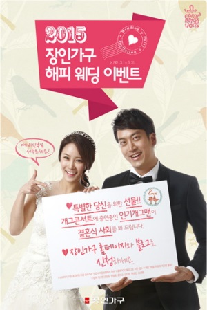 이미지 확대보기9월부터 10월 두 달에 걸쳐 진행되는 ‘해피웨딩 이벤트’는 소비자가 기준 300만 원 이상의 제품을 구입한 고객이라면 누구나 신청할 수 있다. 결혼식 장소와 날짜, 연락처가 포함된 사연을 올린 사람 중 총 4쌍의 커플을 선정, 당첨된 고객의 결혼식에는 조윤호, 정명훈, 홍인규, 김지호, 권재관 등 현재 개그콘서트에 출연 중인 인기 개그맨 중 한 명이 참석해 직접 사회를 맡을 예정이다. 상세한 응모방법은 장인가구 홈페이지를 통해 확인할 수 있다.