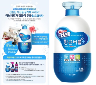 CJ라이온 관계자는 “많은 신혼 부부들이 자신의 신혼집을 공개하고 인테리어와 살림에 대한 정보를 인터넷을 통해 공유하는 트렌트를 반영, 온라인 집들이 이벤트를 진행하게 됐다”며 집들의 선물로 세제를 전달하는 좋은 의미를 알리고 살림이 서툰 초보주부들의 빨래 고민에 이노비트 항균버블 플러스가 도움이 되길 바란다”라고 말했다.