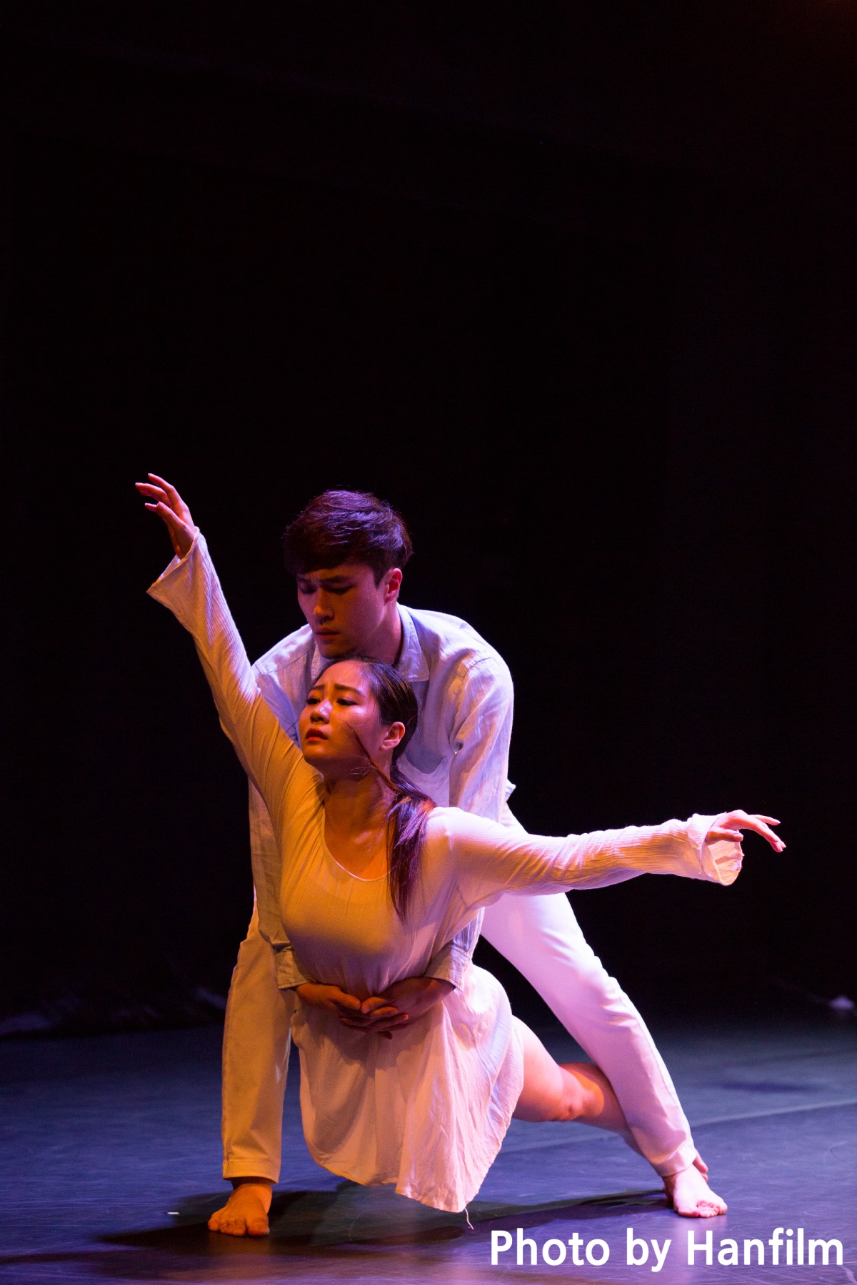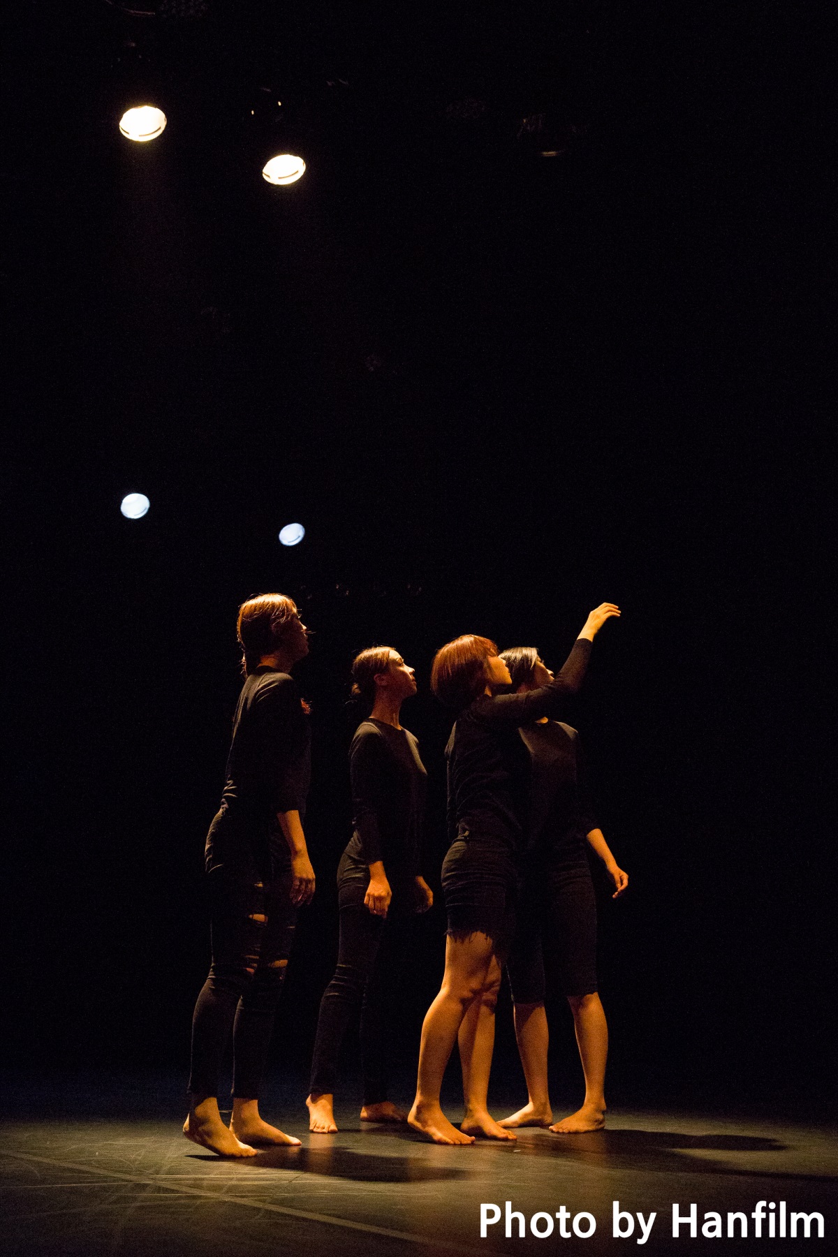 이 작품은 무대의 중앙에서 느린 동작으로 전진하는 여성 3인무로 시작하여 남녀 듀엣, 남성 하나 여성 둘의 3인무 등의 변화를 주면서 유연한 등퇴장과 조명의 앰버효과를 살린다. 검정으로 착복한 모든 연기자들의 표정연기와 더불어 안정된 구도를 보여준 이 작품은 음악의 신선함과 더불어 여유와 청정의 공간, 우주로의 유영(遊泳)같은 신비감을 보여주었다.