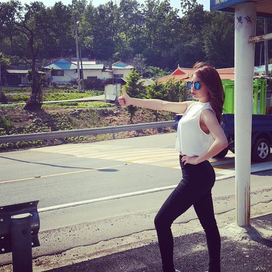 최근 에일리는 자신의 SNS를 통해 "히치하이크? 오늘 날씨 좋아서 신났음"이라는 글과 함께 사진을 게재했다.