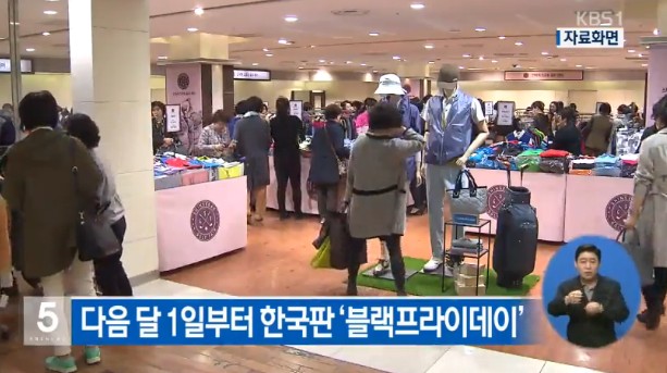 이미지 확대보기오늘부터 2주간 한국 블랙프라이데이가 시작되는 가운데, 국내 백화점과 대형마트, 편의점 등 2만 6천 곳과 200개가 넘는 전통시장, 온라인 쇼핑몰 등에서는 50~70%의 할인 판매가 진행된다.