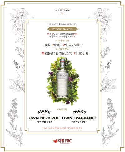 더 보타니스트 진 전용 바를 마련해 스타 바텐더가 직접 제조한 다양한 주류를 무료로 제공되며, 진에 함유된 식물 에센스로 나만의 향수 만들기, 화분 만들기 등 소비자 이색 체험 행사를 운영한다. 이밖에 DJ 음악 공연, 럭키 드로우 이벤트 등도 함께 진행된다.