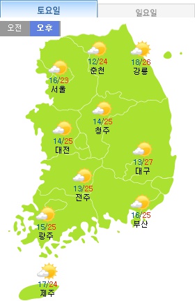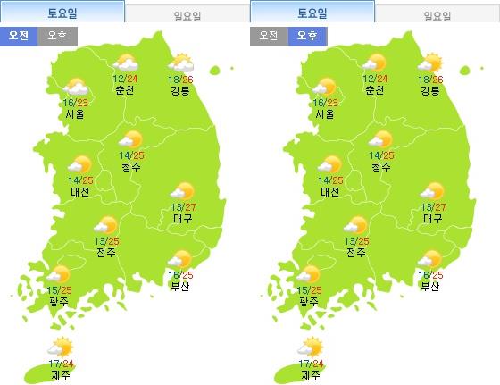 이미지 확대보기주말인 내일 날씨는 맑고 선선해 나들이하기 좋겠다.