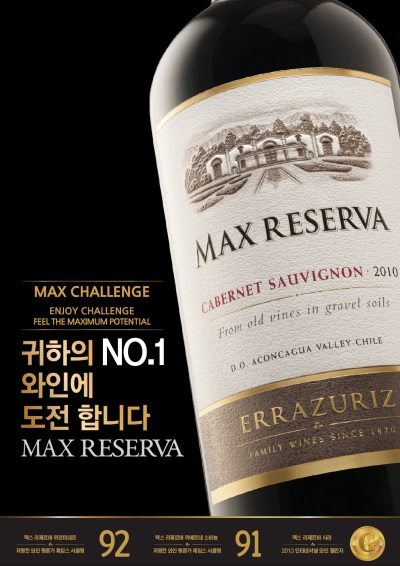 맥스 리제르바는 칠레 와인의 고급화를 이끈 유서 깊은 와인 명가 에라주리즈의 대표 브랜드로 잘 익은 붉은 과일의 향이 매력적인 와인이다. 과일맛이 입안에 오래 머무르며, 균형 잡힌 타닌과 부드러우면서 향긋한 풍미가 느껴지는 것이 특징이다.