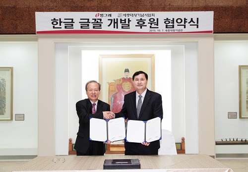 세종대왕기념관에서 가진 협약식에는 박영준 빙그레 사장과 최홍식 세종대왕기념사업회 회장, 박병천 한국글꼴개발원구원장이 참석했다.