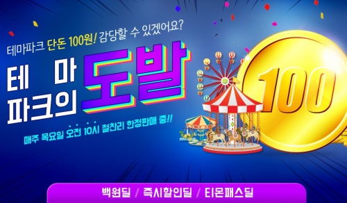 이미지 확대보기티몬은 10월 15일에는 일산 원마운트 스노우파크 종일권을 100원에 선착순 판매하며, 차주 목요일인 22일은 에버랜드 평일 종일자유이용권을, 29일에는 서울랜드 after12 자유이용권을 100원에 한정 판매한다.