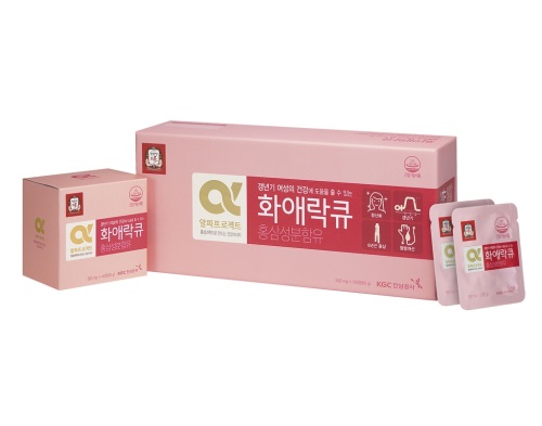 이미지 확대보기‘화애락큐’는 정관장 6년근 홍삼을 주원료로 하여 고품질의 전통 원료인 복령, 백출, 작약, 당귀, 죽엽 등의 부원료를 결합하여 식약처로부터 홍삼의 5대 기능은 물론이며 중년 여성들의 가장 큰 고민거리 중 하나인 갱년기 여성건강에 도움을 줄 수 있음을 인정받았다.
