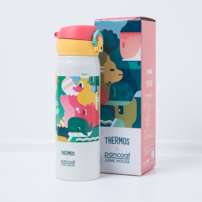 써모스 코리아의 장점인 용량 대비 가장 가벼운 무게, 편리한 원터치 마개 방식을 적용한 진공단열 휴대용 텀블러 JNL 라인을 팬콧 by 정크하우스 만의 감성을 느낄 수 있는 그래픽 디자인으로 재탄생시켜 유니크한 디자인과 휴대 간편한 장점만을 접목시킨 리미티드 라인의 팬콧by 정크하우스 X 써모스 콜라보레이션 텀블러를 선보인다.