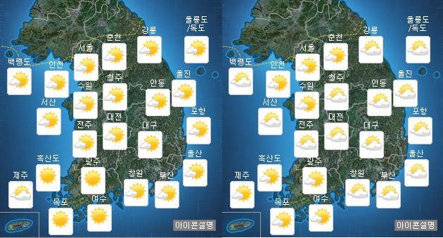 이미지 확대보기[글로벌이코노믹 유창희 기자] 오늘(25일)의 날씨는 전국이 대체로 맑겠다.