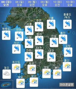 그러나 오후부터 밤사이 남부지방을 중심으로 소강상태에 접어드는 곳이 많을 것으로 보인다.