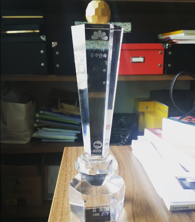 공개된 사진 속에는 지난 1996년 2월 ‘슬픈 언약식’으로 수상했던 당시 KBS2 가요 프로그램이었던 ‘가요톱텐’ 골든컵 트로피가 담겨있다.