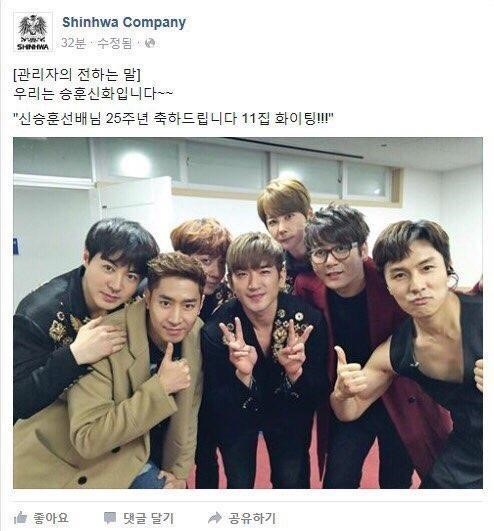 신화는 지난 7일 오후 공식 페이스북을 통해 “우리는 승훈신화입니다∼ 신승훈 선배님 25주년 축하드립니다. 11집 화이팅!!!”이라는 글과 함께 한 장의 사진을 게재했다.