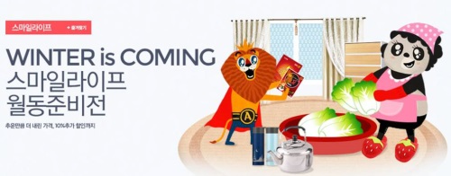 이번 기획전과 함께 11월 스페셜혜택으로 전 회원 최대 5000원 할인 쿠폰과 카드사별(하나, 신한, 우리, NH농협, 씨티, 롯데, KB국민, 현대) 최대 5000원 할인쿠폰 및 스마트배송 무료배송 쿠폰을 선착순으로 지급한다. 무료배송 혜택은 스마일 포인트(2500포인트 이상)로도 누릴 수 있다.