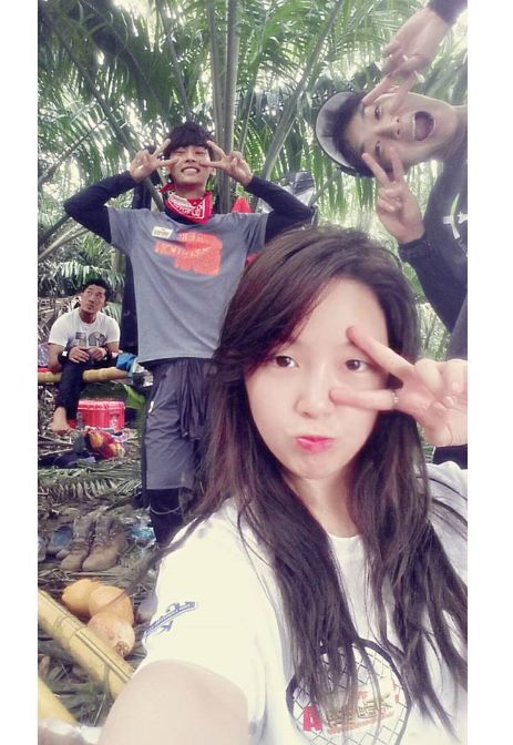 공개된 사진 속 민아는 정글 속에서 100% 생얼을 선보였다. '정글의 법칙' 멤버들 또한 브이 포즈를 취하고 있다.