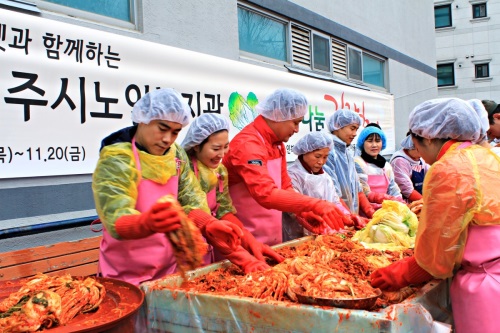 이미지 확대보기2009년 시작된 이래 올해 7회째를 맞이한 본 행사는 다가오는 겨울을 대비해 독거 어르신들에게 김장 김치를 지원하고 경로 식당을 이용하는 어르신들에게 건강한 먹거리를 제공하기 위해 마련됐다. 올해에도 임직원들이 함께 참여해 1500포기의 김치를 담가 경로식당과 독거 어르신 200가구에 전달했다.