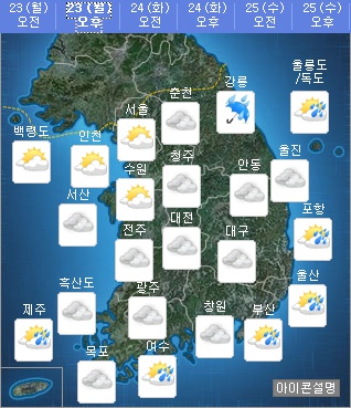 이미지 확대보기오늘 날씨는 전국에 오후까지 비가 내리면서 쌀쌀하겠다.