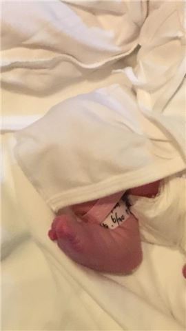 사진에는 갓 태어난 아기의 앙증맞은 발 모습이 담겨 있다.