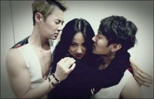 공개된 사진 속 이효리는 전진과 김동완 사이에서 밀착된 포즈로 카메라를 응시하고 있다.