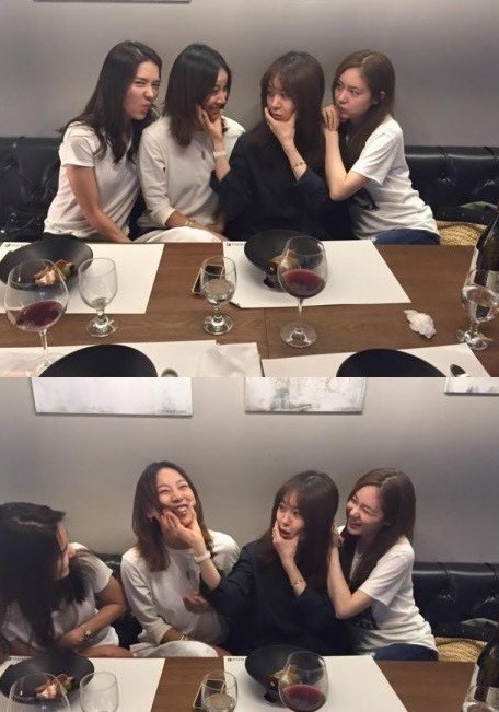 사진 속 성유리, 이효리, 옥주현, 이진은 다정하게 모여 코믹스러운 표정으로 카메라를 응시하고 있다.