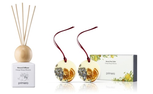 프리메라 ‘내추럴 디퓨저 오렌지 망고 블러썸’은 나무를 깎아 만든 나무구 등 프리메라의 자연주의를 느낄 수 있는 디자인이 특징으로 망고, 오렌지 등 시트러스 계열의 향을 함유해 상큼하면서 달콤한 향을 느낄 수 있다. 프리메라 ‘내추럴 왁스 타블렛 오렌지 망고 블러썸’은 건조된 오렌지와 라벤더 잎을 비즈 왁스와 함께 굳힌 방향제로 방문, 옷장, 서랍 등 밀폐된 공간에 사용하면 더욱 풍부한 향을 즐길 수 있다.