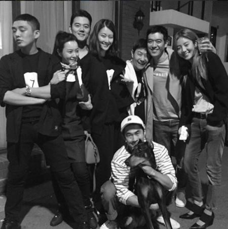 공개된 사진 속에는 유아인과 정유미가 팔장을 끼고 다정하게 있는 모습이다. 그 옆에는 모델 겸 배우 배정남, 모델 이현이, 가수 겸 배우 손담비가 함께 서 있다.
