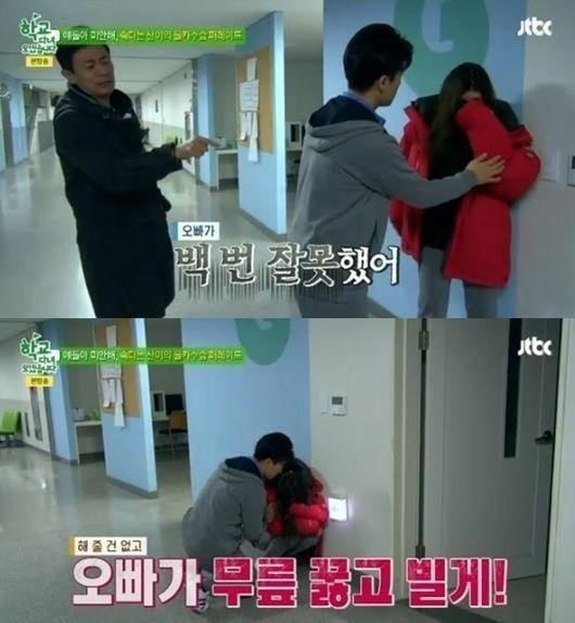 자신의 예상과 전혀 다르게 상황이 돌아가자 산이는 당황하며 전효성과 윤소희를 달래기 시작했고, 결국 윤소희 앞에서 무릎까지 꿇고 사과했다.