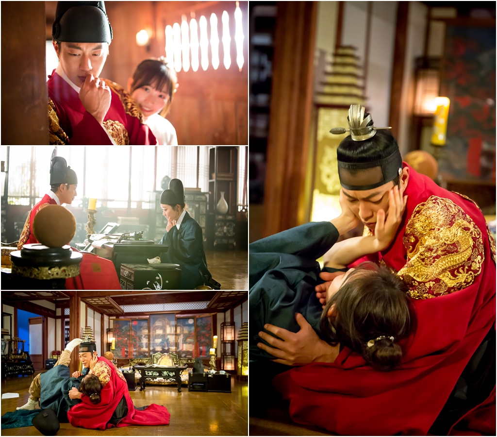 사진 속 조선의 왕 이도(윤두준)는 심각한 표정을 짓고 있고, 단비(김슬기)는 장난스러운 미소를 지으며 고개를 빼꼼히 내밀고 있다. 또 다른 사진에는 이도가 단비를 무릎에 장난스럽게 눕히고 있다. 두 사람의 얼굴이 가까워지면서 심상치 않는 로맨스 기류가 흘렀다.