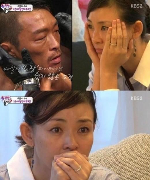 추성훈은 난투의 흔적이 고스란히 드러나 있는 얼굴로 집에 돌아왔다. 그는 쉽게 떠지지 않는 부은 눈에 애써 힘을 주며, 그윽하게 가족들을 바라봐 보는 이들의 가슴을 먹먹하게 했다.