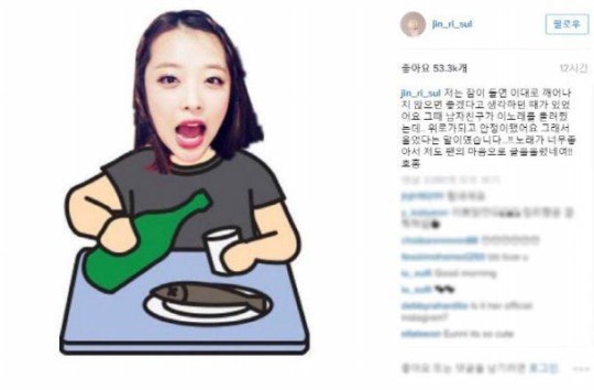 이후 설리는 “저는 잠이 들면 이대로 깨어나지 않으면 좋겠다고 생각하던 때가 있었다. 그때 남자친구가 이 노래를 들려줬는데… 위로가 되고 안정이 됐다. 그래서 울었다는 말이었다. 노래가 너무 좋아서 저도 팬의 마음으로 글을 올렸다”라는 글을 게재하며 변함없는 애정을 드러냈다.