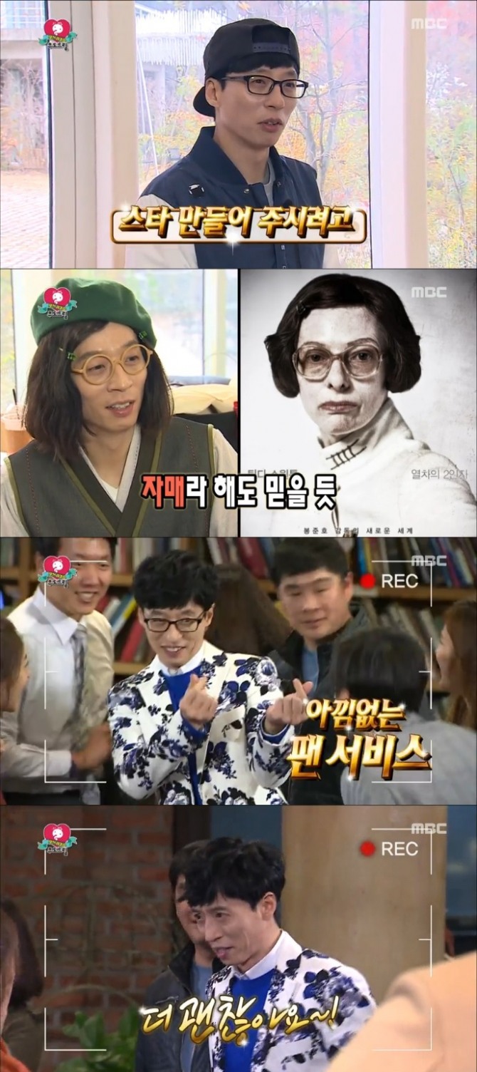 천재화가가 되기 위해 예술혼을 담은 생활한복으로 갈아입은 유재석은 디테일을 살리기 위해 웨이브 단발 가발과 안경, 슬리퍼에 발가락 양말을 착용해 분장을 완성했다. 이에 현장 스태프는 "설국 열차에 나오는 사람 같다"고 '틸다 스윈튼'을 언급해 웃음을 자아냈다.