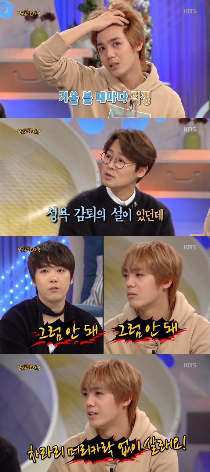 하지만 약의 부작용이 있었다. 노을의 이상곤은 "그 약을 제가 먹어봤다. 머리가 빠지는 건 확실히 멈췄는데 부작용이 사람마다 조금씩 다르더라"라면서 '성욕 감퇴'를 언급했다. 그러자 미르와 이홍기는 이구동성으로 "그럼 안돼"라고 외쳐 웃음을 자아냈다.