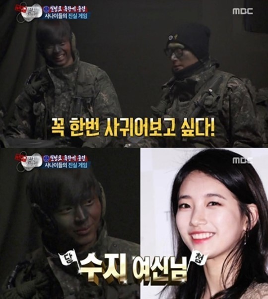 당시 혹한기 훈련에 참여한 그는 “여자 아이돌을 통틀어 사귀고 싶은 사람은 누구인가?”라는 질문을 받자 “너무 많은데, 난 수지 선배님. 연상을 좋아한다”고 솔직하게 밝혔다.