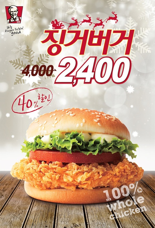 이미지 확대보기이번 이벤트는 10일까지 진행되며 해당 기간 동안 매장을 방문한 고객들은 '징거버거'를 하루종일 단품 대비 약 40% 할인된 금액인 2400원에 즐길 수 있다. (딜리버리 및 단체주문 제외)