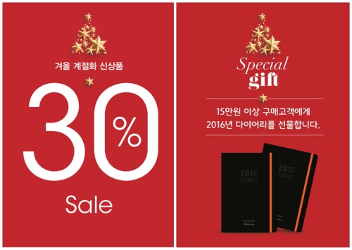 행사기간은 오는 7일부터 17일까지 10일간으로, 남성 및 여성용 앵클 부츠, 여성용 롱부츠 등 겨울 계절화 신상품 전 제품을 최대 30%까지 할인된 가격에 판매한다. 또한 해당기간 중 15만원 이상 구매고객에게 2016년형 고급 다이어리를 선착순으로 증정할 계획이다.
