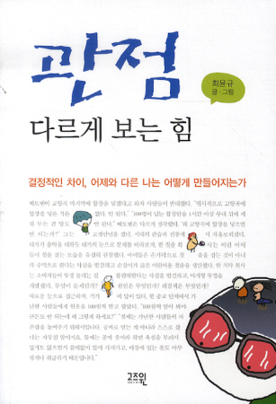 평범했던 일상을 다르게 보는 눈, 변화를 꿰뚫는 통찰의 눈, 통념을 뛰어넘는 혁신의 눈을 길러 주고, 다양한 이야기와 창의적인 관점, 일상의 깨달음을 쉽게 요약한 글과 카툰으로 상상력을 기르는 방법을 알려주는 책 '관점 다르게 보는 힘'을 소개하고자 한다. 저자 최윤규 대표는 삼성경제연구소 'SERI CEO'와 경제주간지 '이코노미스트' 등에 경영과 리더십, 변화와 혁신을 주제로 카툰을 연재하고 있으며 창의성에 관한 강연을 10년 넘게 지속해 온 창의성 전문가이다.