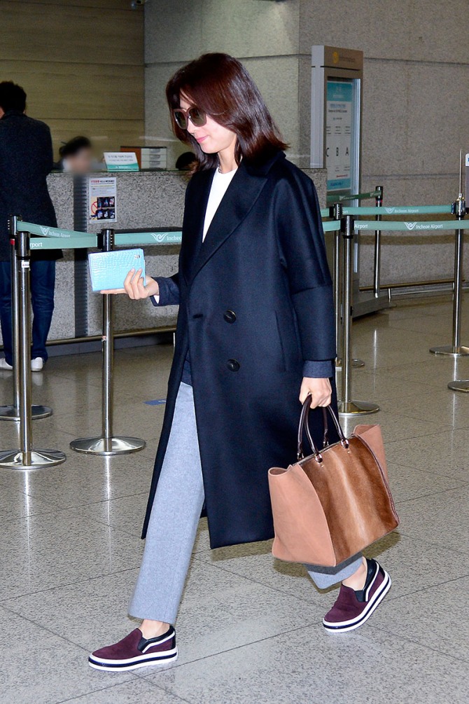 이날 김희애는 윤기가 흐르는 롱 코트에 똑 떨어지는 슬랙스로 편안하면서도 시크한 공항패션을 선보여 눈길을 사로잡았다. 여기에 세련된 디자인의 빅 백을 착용해 꾸미지 않은 듯 시크하면서도 스타일리시한 감각을 드러냈다. 특히 무심한 듯 가방을 살짝 쥐는 것이 김희애식 룩의 포인트다.