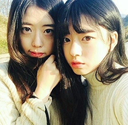 공개된 사진 속 신세휘와 친언니는 서로 얼굴을 맞댄 채 카메라를 응시하고 있다.