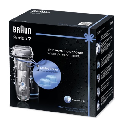 이미지 확대보기이번 한정판에는 프리미엄 면도기 New 시리즈 7 799cc-7에 세척&충전 스테이션 세정액 2개가 추가 구성되어 선물의 품격을 높였다.