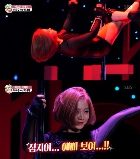 이날 박나래는 음악에 맞춰 수준급 폴댄스를 선보이며 의외의 섹시함을 과시했다.