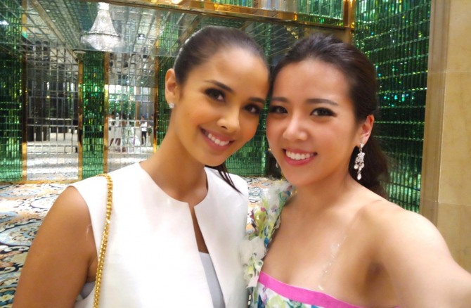 이미지 확대보기2013년 미스월드인 메건 영과 다정한 모습을 보여 주고 있는 미스월드 코리아 정은주(사진=뉴시스)