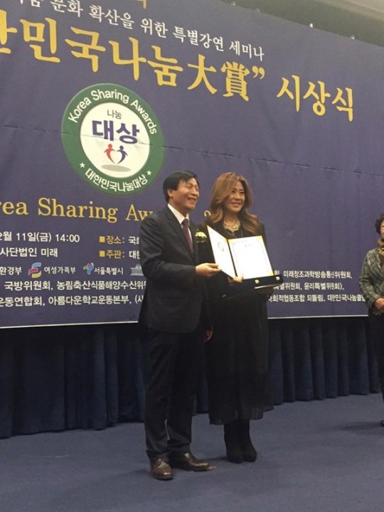 한편, '대한민국 나눔 대상'은 환경부, 여성가족부, 보건복지부, 서울특별시 등이 후원하! 국내외에서 다양한 형태로 환경 보호와 나눔 문화 확산을 위해 나눔을 실천하는 기업과 개인을 발굴하여 포상하고, 이를 널리 알려 우리 사회 나눔 문화 확산에 기여하는 명실상부한 나눔 분야 최고의 상이다.