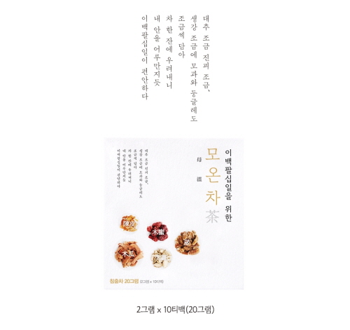 프리미엄블렌딩 한방차 브랜드 티나린에서 선보인 ‘모온차’가 임산부들에게 인기다. 티나린 모온차는 대추, 진피, 생강, 모과, 둥굴레 등 다섯 가지 임산부들에게 좋은 차를 적정 비율로 블랜딩해, 맛과 향, 건강까지 잡은 전통한방차다.